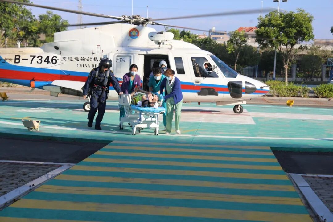 圖片來源:中國交通運輸部東海救助局公眾號 據報道,由於該遊客處於昏迷狀態、病情危重,為確保萬無一失,飛行隊聯合廈門大學附屬翔安醫院共同執行此次救援。一名醫生攜帶心電圖機及其他必要急救設備與藥品,趕赴廈門高崎機場與待命的救助機組會合。 救助直升機搭載醫生抵達事發現場後,救生員利用專業擔架妥善固定患者,藉助絞車裝置將其安全轉移至機艙內。返程途中,隨行醫生及時為患者實施氣道開放等關鍵處置措施,並全程嚴密監測其生命體征變化,同時藉助通訊手段將監測數據實時傳輸至後方醫院,為院方精準施治爭取了寶貴時間。 約一小時後,救助直升機安全降落在廈門大學附屬翔安醫院停機坪,患者被早已等候在此的醫護團隊無縫銜接接診。經後續全力搶救,目前患者已轉危為安,生命體征趨於穩定,仍在接受進一步觀察和治療。(完) 【編輯:林曉惠】
