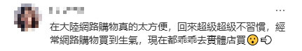 台灣網友評論截圖 據了解,淘寶購物將商品運送至台灣,物流方式主要提供官方集運、官方直郵,有些從不同平台購買大陸商品的台灣消費者也會選擇私人集運的方式。 不過,即使是淘寶官方集運,也存在卡關的情況。今年3月,就有許多台灣網友抱怨淘寶合作的台灣物流廠商清關作業緩慢,明明貨物已經運到台灣,清關卻一卡好幾天,有時多日都沒有物流動態。 另外,台灣物流常見的配送方式有便利商店交寄、宅配親自收取兩種,但在貨量大的情況下,又容易出現收到到貨通知卻領不到包裹的情況。 今年9月至10月期間,有高雄民眾反映,收到便利商店收貨通知,卻發現自己比物流司機還早到,包裹尚未送達。而便利商店店員表示,這種情形已經持續將近一兩周,甚至有門市累積高達70個包裹處於“通知已發送但貨品未到”的狀態。 對於這種狀況,台灣物流司機解釋,如果在配送過程中遇到塞車,就會導致送貨時間延誤,而這種延誤特別容易發生在9月、10月期間,因為假期較為密集。 在小紅書上,許多台灣網友體驗過兩岸物流後,都感慨大陸物流“太方便”。一位到上海生活的台灣網友就直呼,大陸網購“令人震撼”:退換貨省心、包裹直送家門口、一件包郵……有台灣網友則直言,“在大陸網絡購物真的太方便,回來(台灣)超級超級不習慣,經常網絡購物買到生氣。”