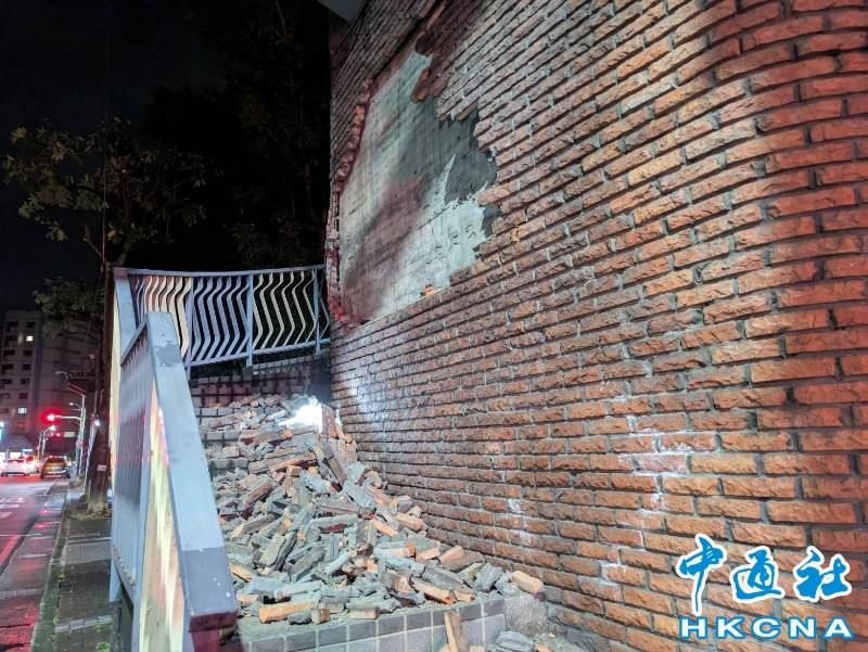 圖為新莊丹鳳高中前天橋磁磚掉落,無人受傷,已拉封鎖線。香港中通社圖片 台媒報道,地震過後宜蘭南澳大停電,台北市通報2人受困,台灣高鐵6班次臨時停車。 地震發生一刻,有住宅單位的燈,以及其他物品劇烈搖晃。台北、新北、台中、高雄等,全台23個縣市有震感,震央位於宜蘭以東大約32公里海域,震源深度72.8公里。福建福州、泉州等地亦有強烈震感。 央視新聞報道,27日晚台灣宜蘭縣海域發生地震時,央視記者在台北地區感受到明顯震感,當時屋內的吊燈劇烈搖晃,門窗亦在地震過程中發出聲響,記者隨後前往避難場所。 新北市感受到明顯的強烈搖晃,有民眾家中水族箱的水因搖晃逸出,客廳的電視傾倒,要一邊用手扶住屏幕,一邊找支撐點穩住身體。有民眾形容地震時搖晃得很可怕,要趕緊躲起來。報道又指社區內有樓宇傳出物件掉落的聲響,由於搖晃嚴重,並事出突然,根本來不及躲到戶外。 台北市長蔣萬安表示,第一時間啟動應變機制,各局處進駐,並請區公所回報狀況,掌握相關災情,大概有39件停漏水、房屋毀損等輕微案件,大致已處理完成,僅零星個案需要施工,28日早上施工完成。(完) 【編輯:紀東】