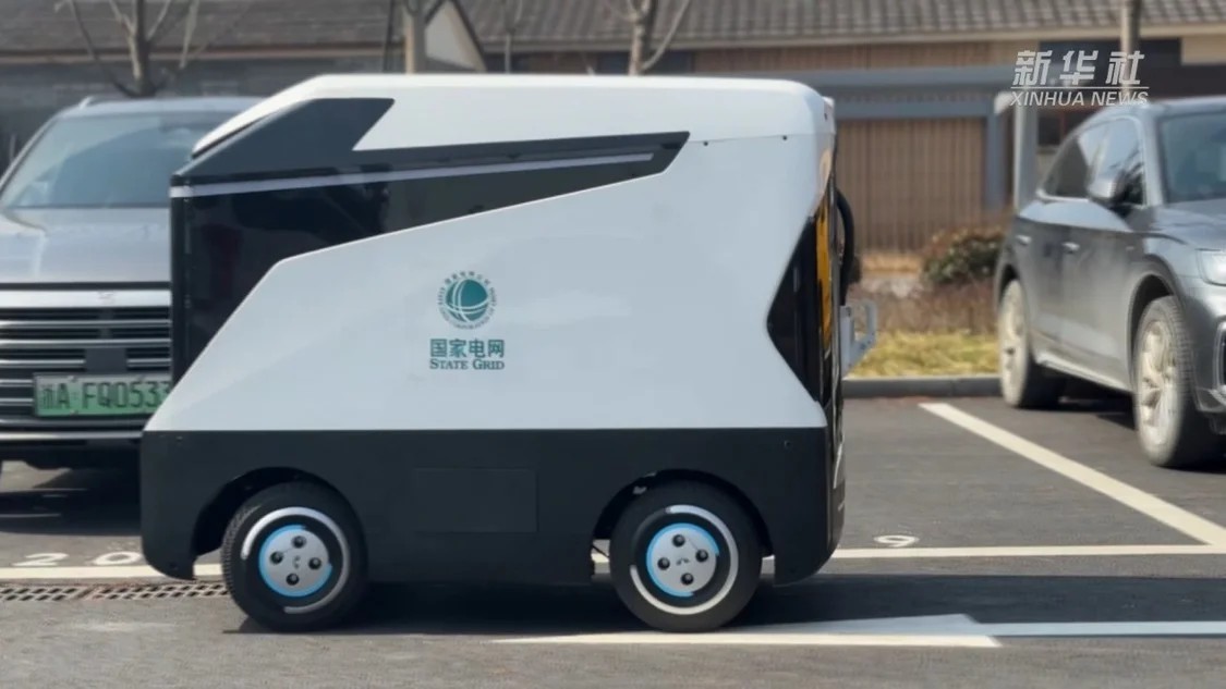 圖為浙江省的自動駕駛可移動充電機器人。圖源:新華社