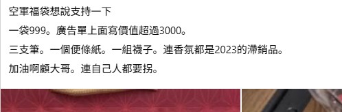 聲稱價值3000卻是襪子、便利貼?台空軍福袋惹議分享到: