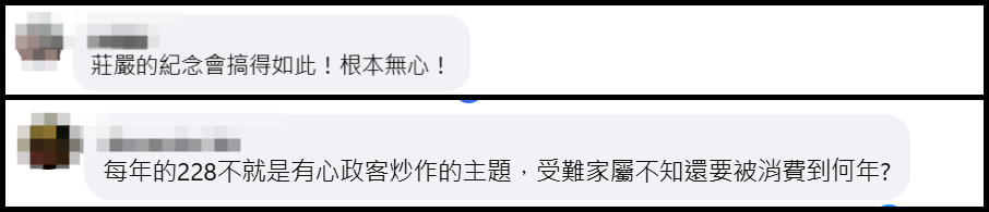 “二二八”事件是指1947年2月28日,台北煙草專賣局緝私警察毆打販賣私煙的煙販激起民眾憤慨,從而引發全島民眾反對國民黨當局專制統治、要求民主自治的反抗運動。該事件被視為台灣歷史上的集體創傷,也是是台灣社會至今未能癒合的傷口。 然而,今天的“二二八”紀念儀式情況讓台輿論質疑“根本無心(紀念)”。網友批評稱,有些政客並非真心紀念“二二八”事件,只是把它當做炒作主題,消費受難家屬。