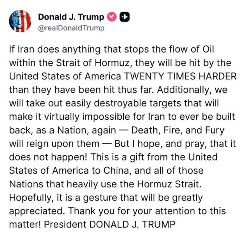 (特朗普X平台截圖) 不過,伊朗外交部副部長加里布阿巴迪在國家電視台表示,伊朗只有在確保未來不再遭受攻擊的情況下,才會考慮結束戰爭。他強調,停火協議只有在確認類似事件不會重演時才能生效。 特朗普的信息使油價暫時回落,台股的油電燃氣類股隨之大跌,台塑化跌停至61.4元,成交量減少至1.5萬張。(完) 【編輯:黃璇】