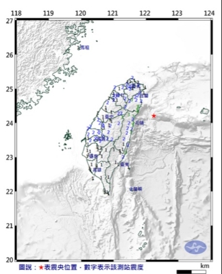 台灣花蓮今天凌晨發生5.7級及4.8級地震分享到: