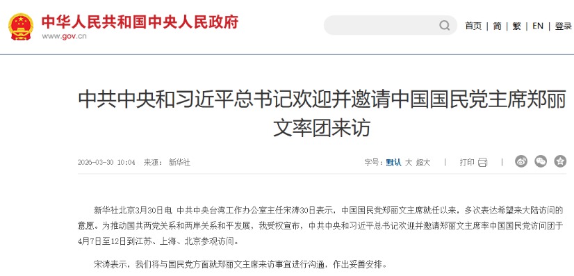 香港中通社4月7日電 中國國民黨主席鄭麗文率團訪問大陸,7日下午抵達南京後,晚上由中共中央台辦主任宋濤舉辦接風宴歡迎。鄭麗文在致詞時表示,她此次的訪問有四項重大歷史意義,其中一個就是在兩岸關係上再次證明,“九二共識”、反對“台獨”這個政治基礎仍歷久彌新,是當前兩岸關係的定海神針。