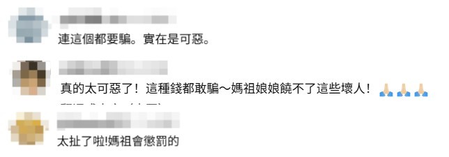 台灣近期利用進香活動詐騙高發,民眾怒斥:連媽祖都騙?香港新聞網4月24日電(編輯 丘志彬)近期,台灣各地舉辦媽祖信仰文化活動,誰曾想這些活動,竟然成為詐騙集團伺機而動的舞台。從“免費的結緣品”到“消失的遊覽車”……台灣的媽祖信眾接連慘遭詐騙,儘管台灣警方和媒體多次提醒和曝光,但騙局依然層出不窮。對此,台灣民眾忍不住怒斥:“太可惡,連這種錢都騙!”