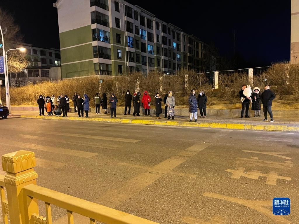 1月8日,青海省西寧市,市民紛紛下樓避險。新華社記者李琳海 攝