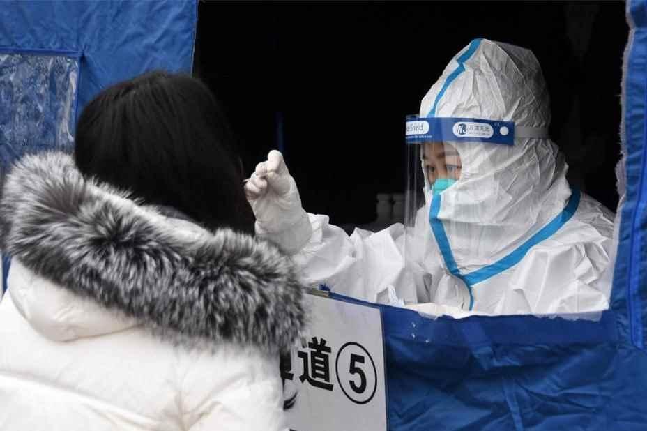 1月24日,在北京市海澱區中關村街道臨時核酸檢測採樣點,醫護人員在進行核酸採樣。圖源:新華網 【編輯:馬華】