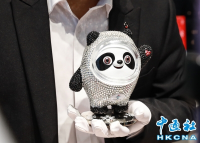 香港新聞網2月14日電 2月14日,北京冬奧吉祥物、鑽石版“冰墩墩”樣品亮相河南鄭州冬奧特許零售店,進行為期三天的展示。