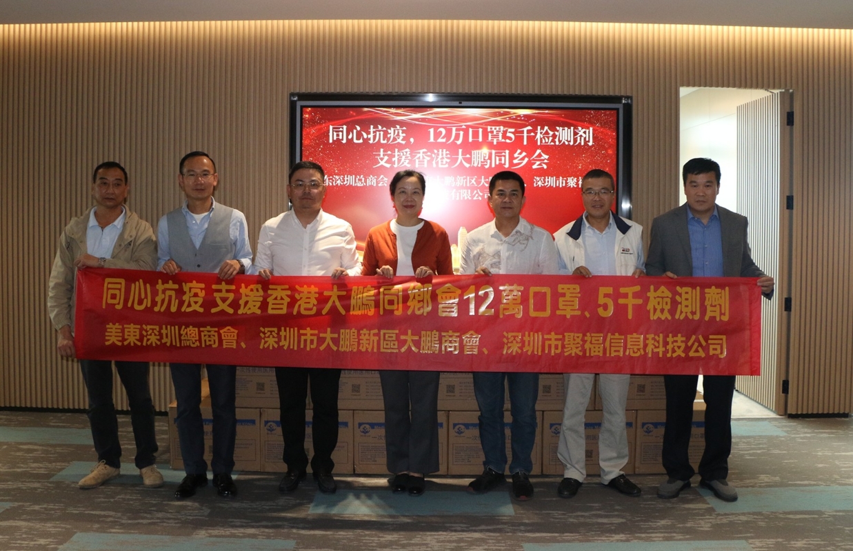 東波 攝 據悉,為支持香港抗疫,加拿大深圳社團聯合總會積極統籌協調各屬會及會員,聯合加拿大深愛慈善基金會及Sci中加國際創新中心、深圳新願景天使創新產業投資基金發起了“助港抗疫,深愛同行”募捐活動。加拿大深圳社團聯合總會主席齊佳等帶頭捐款,總會會員積極響應,匯聚愛心力量,支持香港抗疫。 活動得到了深圳市華僑公益基金會的大力支持,在短時間內協助總會採購了2萬多個N95口罩、3萬個核酸檢測盒,並捐贈給全港各區工商聯。據全港各區工商聯會長盧錦欽介紹,這批防疫物資運抵香港後,將打包成“防疫愛心包”,派發給全港18區的基層市民和防疫物資緊缺的學校。 “風雨同舟,共抗疫情。” 加拿大深圳社團聯合總會共同主席辛之寬表示,抗疫最重要的是團結,最迫切的是行動。加拿大深圳社團聯合總會將繼續凝聚僑心僑力,與香港各界攜手應對疫情帶來的挑戰,齊心協力打贏這場疫情防控阻擊戰。 “我們期待和加拿大深圳社團聯合總會在公益方面多互動多交流,攜手助港抗疫、聚力行善,用僑愛暖人心。” 深圳市華僑公益基金會會長陳鎮文表示,相信大家眾志成城,一定能助力香港早日戰勝疫情,恢復正常生活秩序。 美東深圳總商會向香港大鵬同鄉會捐贈防疫物資 近日,美東深圳總商會聯合大鵬新區大鵬商會、深圳市聚福信息科技有限公司向香港大鵬同鄉會捐贈一批防疫物資,幫助大鵬旅港鄉親做好疫情防控工作。