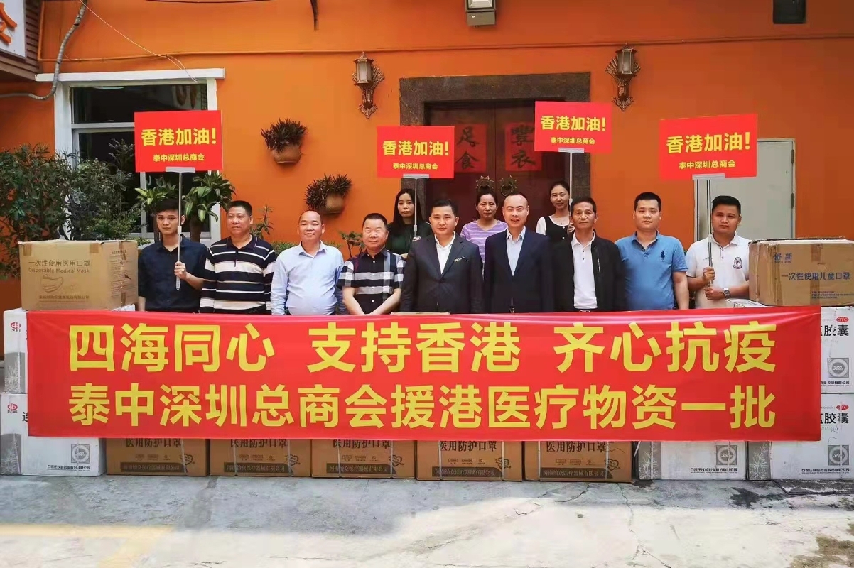東波 攝 美東深圳總商會會長梁鴻生和大鵬新區大鵬商會會長李建齊都是大鵬人,對家鄉大鵬懷有深厚的感情,希望能為幫助大鵬旅港鄉親抗疫盡一份心、出一份力。他們的想法得到了美東深圳總商會執行會長胡權輝、聚福信息科技有限公司總裁曹磊的大力支持,4人共同出資,採購了12萬個口罩和5000份檢測劑捐贈給香港大鵬同鄉會。 “香港和深圳山水相連、親如兄弟,我們作為海外深圳社團的代表,幫助香港同胞抗疫,義不容辭。”梁鴻生表示,有祖國這個堅強的後盾,有全國人民和海外僑胞的大力支持,香港特區政府和社會各界人士團結一心,眾志成城,一定能够早日戰勝疫情。 泰中深圳總商會向香港潮屬社團總會捐贈防疫物資 近日,泰中深圳總商會舉辦“四海同心 支持香港 齊心抗疫”援港醫療物資捐贈活動。泰中深圳總商會會長鄭楚標及總商會部分骨幹成員參加了活動。