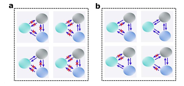 三體系統中的量子導引結構(不帶叉箭頭表示一方可以導引另一方,帶叉箭頭表示一方不可以導引另一方)a為量子導引的單配性關係結構,任何一方不能被另外兩方同時導引;b為違背單配性的共享關係結構,某一方可以被另外兩方同時導引,圖片來自中國科學技術大學 此次研究成果展示了量子導引在多體系統中豐富的關係結構,加深了對量子導引物理概念的理解,對量子信息基礎研究具有重要意義。同時該工作為基於量子導引單配性的信息協議提供了全面的分析視角,在多用戶量子通信、量子網絡的搭建、多體糾纏檢測中具有重要的應用前景。 中科院量子信息重點實驗室博士研究生郝澤琰為該工作第一作者。此次研究獲得科技部、國家基金委、中國科學院、安徽省的支持。 【編輯:馬華】