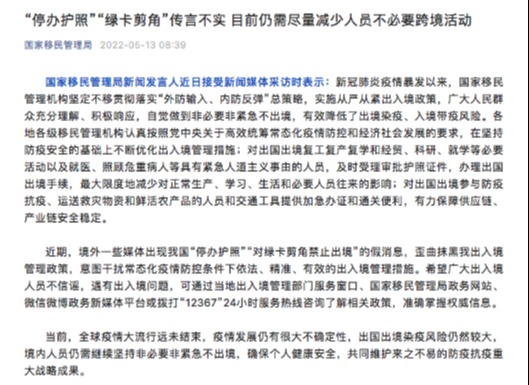 中國移民局:繼續倡導內地人員非必要非緊急不出境分享到: