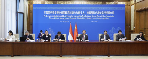 王毅:地區合作重心應放在東亞,引擎應該是東盟據中國外交部網站消息,2022年5月6日,國務委員兼外長王毅同印尼對華合作牽頭人、統籌部長盧胡特舉行視頻會晤。