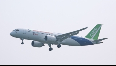 中國製C919大飛機首次飛行試驗成功香港中通社5月14日電 北京時間14日6時52分,編號為B-001J的C919大飛機從上海浦東機場第4跑道起飛,於9時54分安全降落,標誌著中國商用飛機有限公司(下稱“中國商飛”)即將交付首家用戶的首架C919大飛機首次飛行試驗圓滿完成。