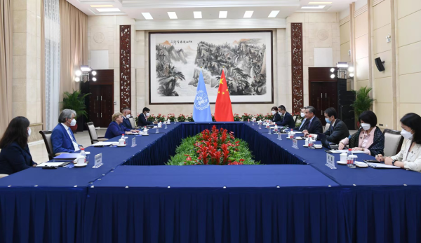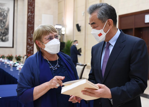 聯合國人權高專時隔17年訪華,王毅:正本清源之旅據外交部網站消息,2022年5月23日,國務委員兼外長王毅在廣州會見來華訪問的聯合國人權高專。