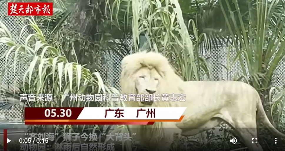 圖源:楚天都市報極目新聞視頻截圖 當天,不少市民來到動物園,特意探望“齊劉海獅子”。有市民說前一天看到帖子,覺得這隻“齊劉海”獅子很可愛,上午10時許就到獅子生活區等候,但獅子一直在睡覺,過了10多分鐘才露面人前。看到獅子換了個髮型,也沒有失望,還打趣說,可能它也知道“齊劉海”不適合自己。 廣州動物園科普教育部部長黃志宏表示,“齊劉海”獅子名叫“杭杭”,而“杭杭”之所以會留起“齊劉海”,并非人為修剪,而是自然形成的。黃志宏介紹,前幾天廣州下了幾場雨,在下雨的時候動物園會同時開放外室和內室,動物可以自由選擇在室內或戶外活動。杭杭可能正是淋了雨,頭發沾水耷拉下來,才形成了“齊劉海”。 黃志宏表示,隨著天氣變化和“杭杭”的行動,它的“髮型”每天都可能發生改變。而工作人員是不可能去給獅子剪頭髮的。“杭杭的性格雖然比較溫和,但畢竟是猛獸,為了保證安全,我們的工作人員不會和它們直接接觸,都是隔籠操作。平時做身體檢查或抽血,都需要麻醉後才能操作,麻醉對動物有一定的傷害,所以我們不可能為了給它修剪毛髮特意進行麻醉。”(完) 【編輯:葉永成】