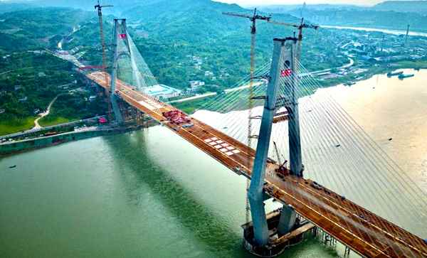 世界最寬公鐵兩用斜拉橋在中國四川合龍分享到: