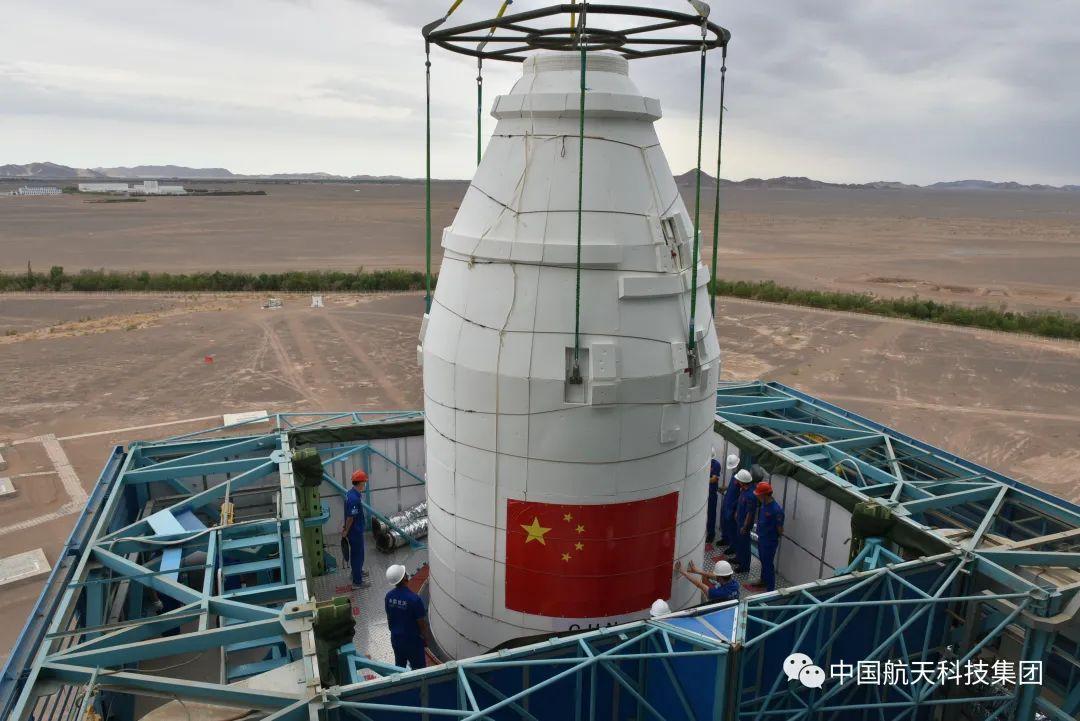 吊裝星罩組合體。吳敬博 攝 執行本次發射任務的長征四號丙運載火箭是由航天科技集團八院抓總研制的常溫液體三級運載火箭,具備發射多種類型、不同軌道要求衛星的能力,可實施一箭單星或多星發射任務,其700公里太陽同步軌道運載能力可達3噸。