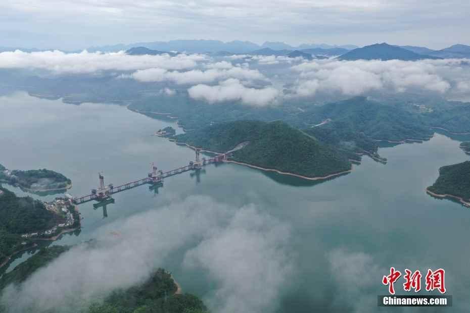 香港中通社6月29日電 6月29日,由皖贛鐵路安徽有限責任公司承建、中國鐵建大橋工程局集團施工的池(州)黃(山)高鐵太平湖特大橋三個主塔全部封頂,為年底全橋合龍奠定基礎。