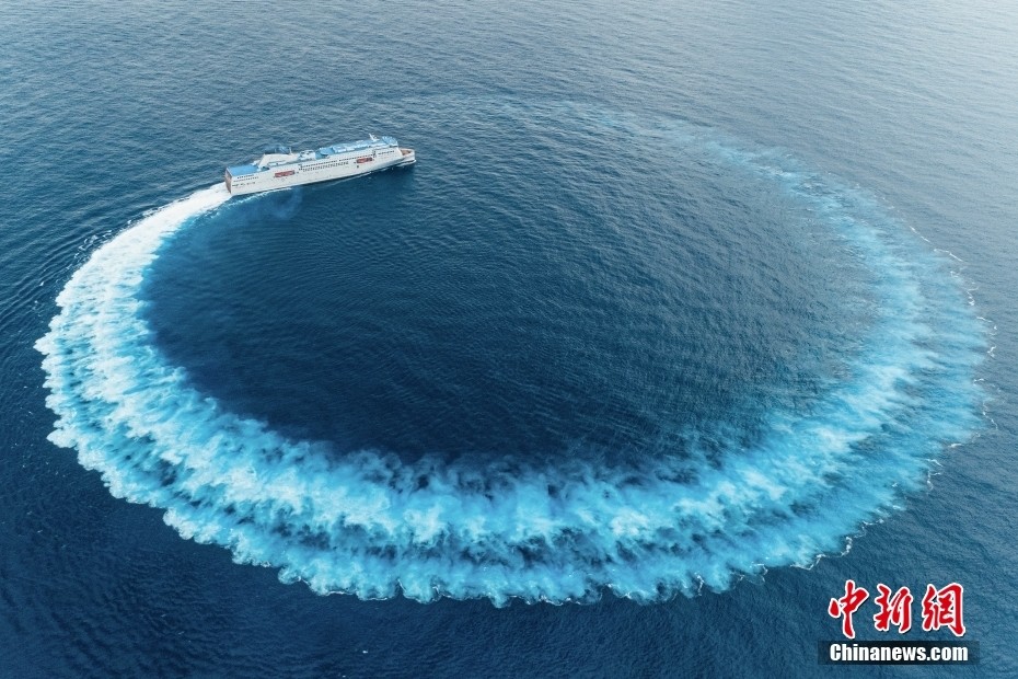 圖為7月16日,該船在伶仃洋上進行海試。圖源:中新社