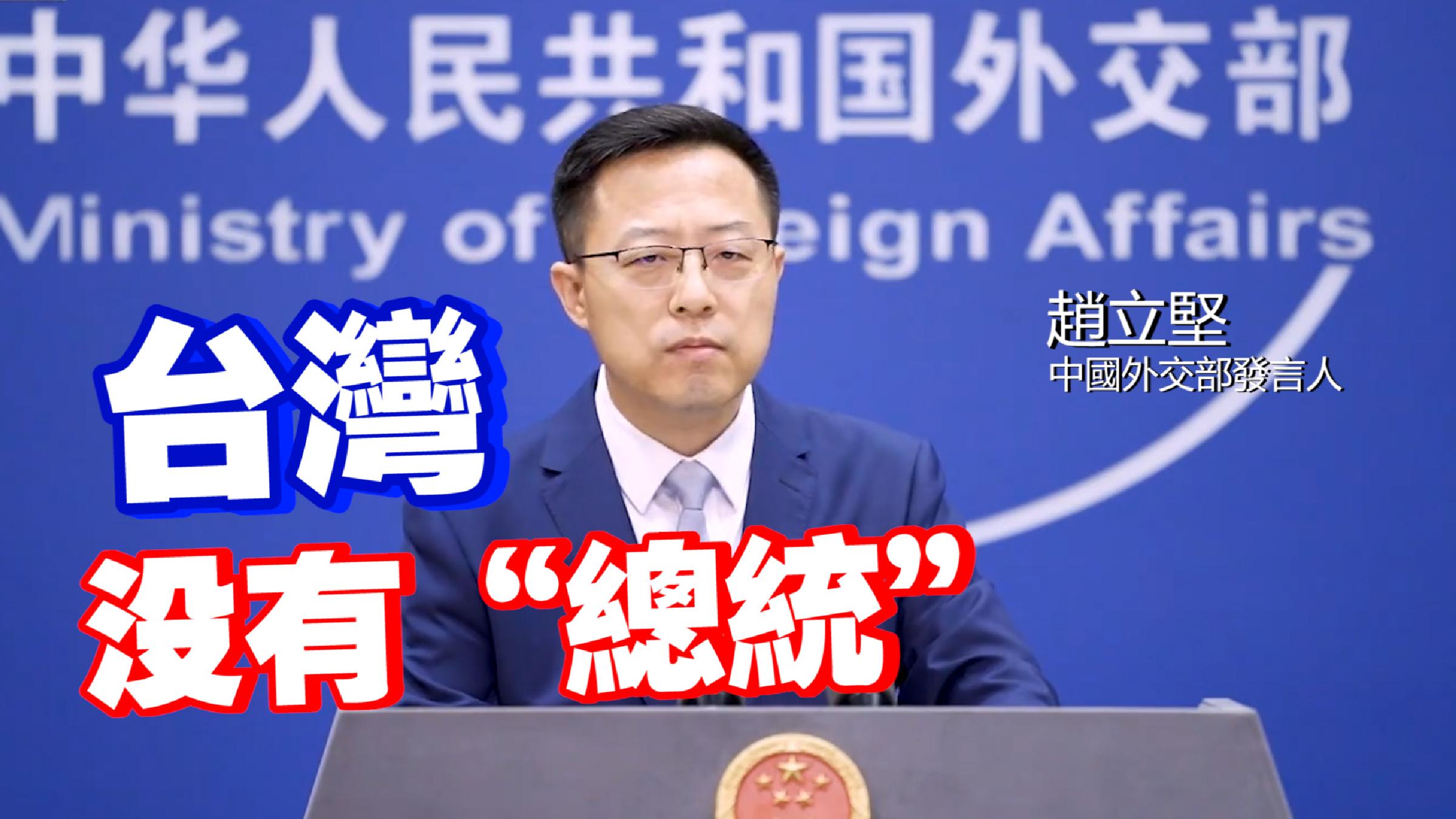 對此,趙立堅回應時指出:“首先我要告訴你,台灣沒有所謂‘總統’,請注意你的措辭。”