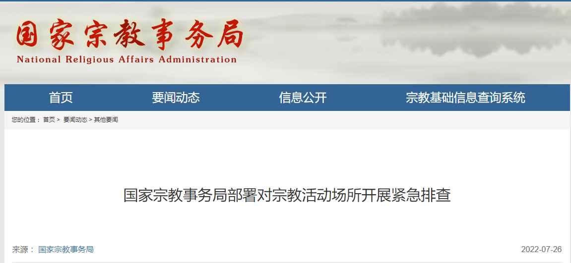 網站截圖 國家宗教事務局要求各地加大對宗教活動場所、宗教院校、宗教團體的督導巡查力度,指導宗教團體健全規章制度,支持宗教界全面從嚴治教,切實提高自我教育、自我管理、自我約束的水平。加強對宗教界的思想引領,指導宗教界持續深入開展愛國主義、集體主義、社會主義教育,深化黨史、新中國史、改革開放史、社會主義發展史學習,引導宗教界人士和信教群眾踐行社會主義核心價值觀,切實增強宗教界人士的國家意識、公民意識、法治意識,確保在大是大非和原則問題上始終保持頭腦清醒,堅決杜絕發生此類問題,切實維護宗教領域的和諧穩定。 近日,南京玄奘寺被揭供奉侵華日軍戰犯的牌位。24日,根據南京市委市政府調查組公佈,供奉牌位者為吳啊萍,她涉犯尋釁滋事罪已被刑事拘留。經調查核實,吳啊萍供奉侵華日軍戰犯牌位屬個人行為,未發現其受人指使或與他人共謀的情況。(完) 【編輯:凌玉辉】
