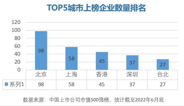再具體來看,500強企業都集中在哪些城市? 北京、上海、香港、深圳、臺北,位居TOP5