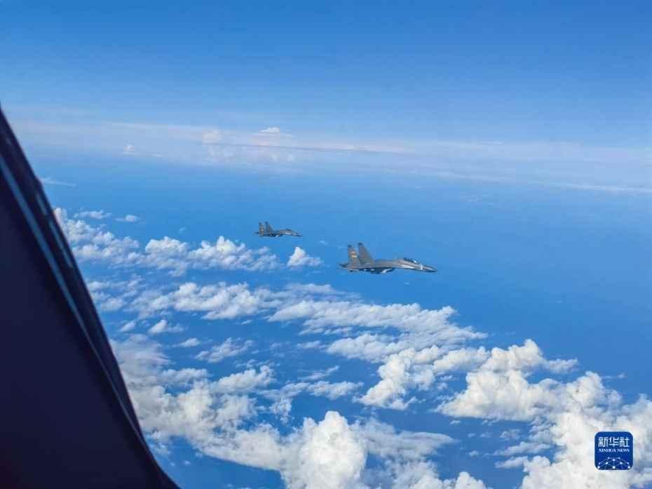 2022年8月7日,中國人民解放軍東部戰區按計劃,繼續在台島周邊海空域進行實戰化聯合演訓。這是戰機編隊飛行。圖源:新華社