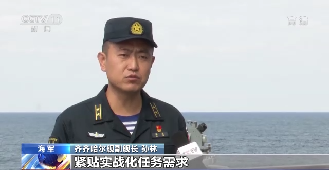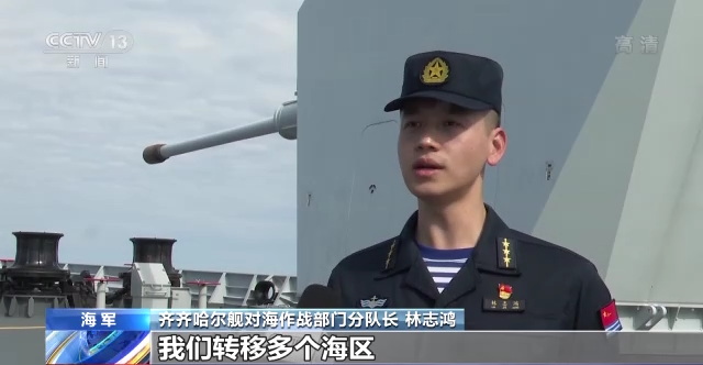 海軍齊齊哈爾艦對海作戰部門分隊長 林志鴻:此次主炮對海射擊訓練,我們轉移多個海區,以復雜環境為抓手,預先加強針對性、適應性訓練,深入推進各專業號手的快速打擊、精準打擊等協同作戰能力的加速升級。