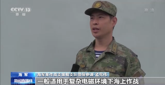 海軍某作戰支援艦支隊信保參謀 孟憲偉:隱蔽通信條件下的海上補給一般適用於復雜電磁環境下海上作戰,以此達到減少電磁信號暴露、隱蔽作戰企圖,確保無線電靜默條件下海上補給保障的順利實施。