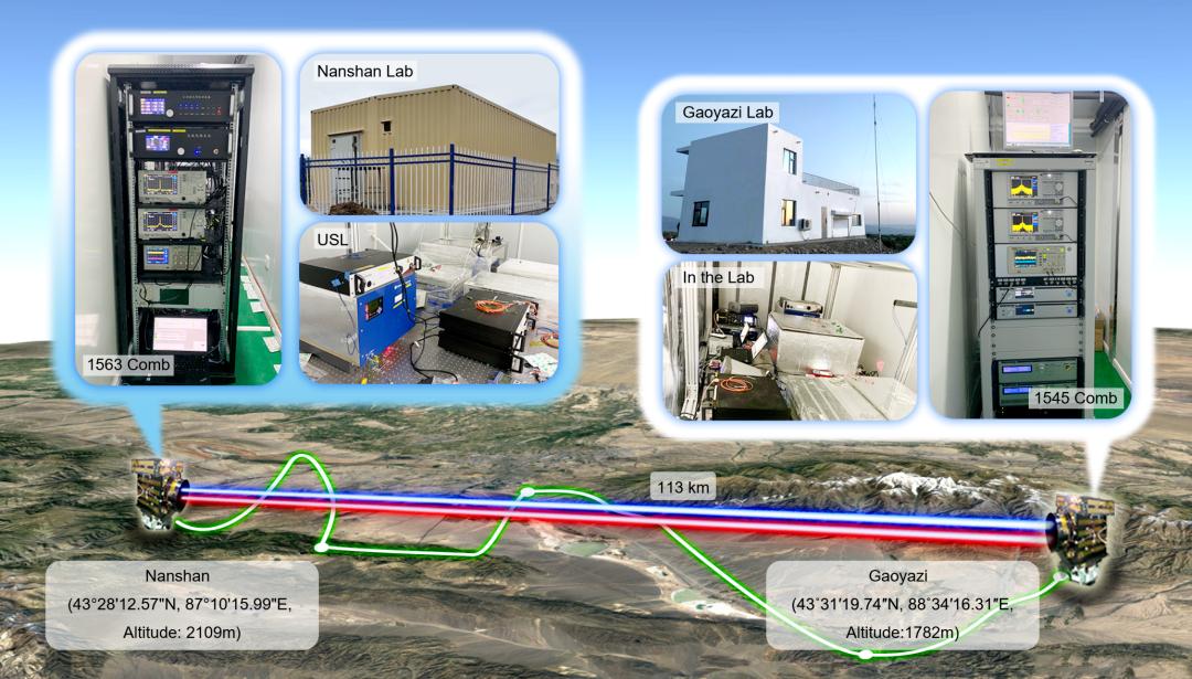 百公裏高精度時頻傳遞實驗示意圖。(研究團隊供圖) 近年來,光鐘的穩定度已進入E-19量級,將形成新一代的時間頻率標準(光頻標),可在精密導航定位、全球授時、廣域量子通信、物理學基本原理檢驗等領域發揮重要作用。 “精確的計時不應局限於高冷的實驗室,還要‘飛入尋常百姓家’。通過高精度的時間頻率傳遞,構建廣域光頻標網絡,是光鐘在上述諸多領域發揮作用的前提。”文章第一作者、中國科學技術大學副研究員沈奇說,要有與光鐘精度相匹配的時間傳遞技術,把精準的時間傳播出去。 據介紹,自由空間高精度時間頻率傳遞是建立全球性廣域光頻標網絡的重要內容,但此前國際上的相關研究成果信噪比低、傳輸距離近,難以滿足星地鏈路高精度時頻傳遞的需求。 此項研究中,研究團隊實現了瓦級功率輸出的高穩定光頻梳,實現了納瓦量級的高靈敏度線性光學采樣探測,進一步提升了光傳輸望遠鏡的穩定性和接收效率。 基於上述技術突破,研究團隊在新疆烏魯木齊成功實現了113公裏自由空間時頻傳遞,充分驗證了星地鏈路高精度光頻標比對的可行性。 多位《自然》雜誌審稿人表示,該研究是星地自由空間遠距離光學時間頻率傳遞領域的一項重大突破,將對暗物質探測、物理學基本常數檢驗、相對論檢驗等基礎物理學研究產生重要影響。