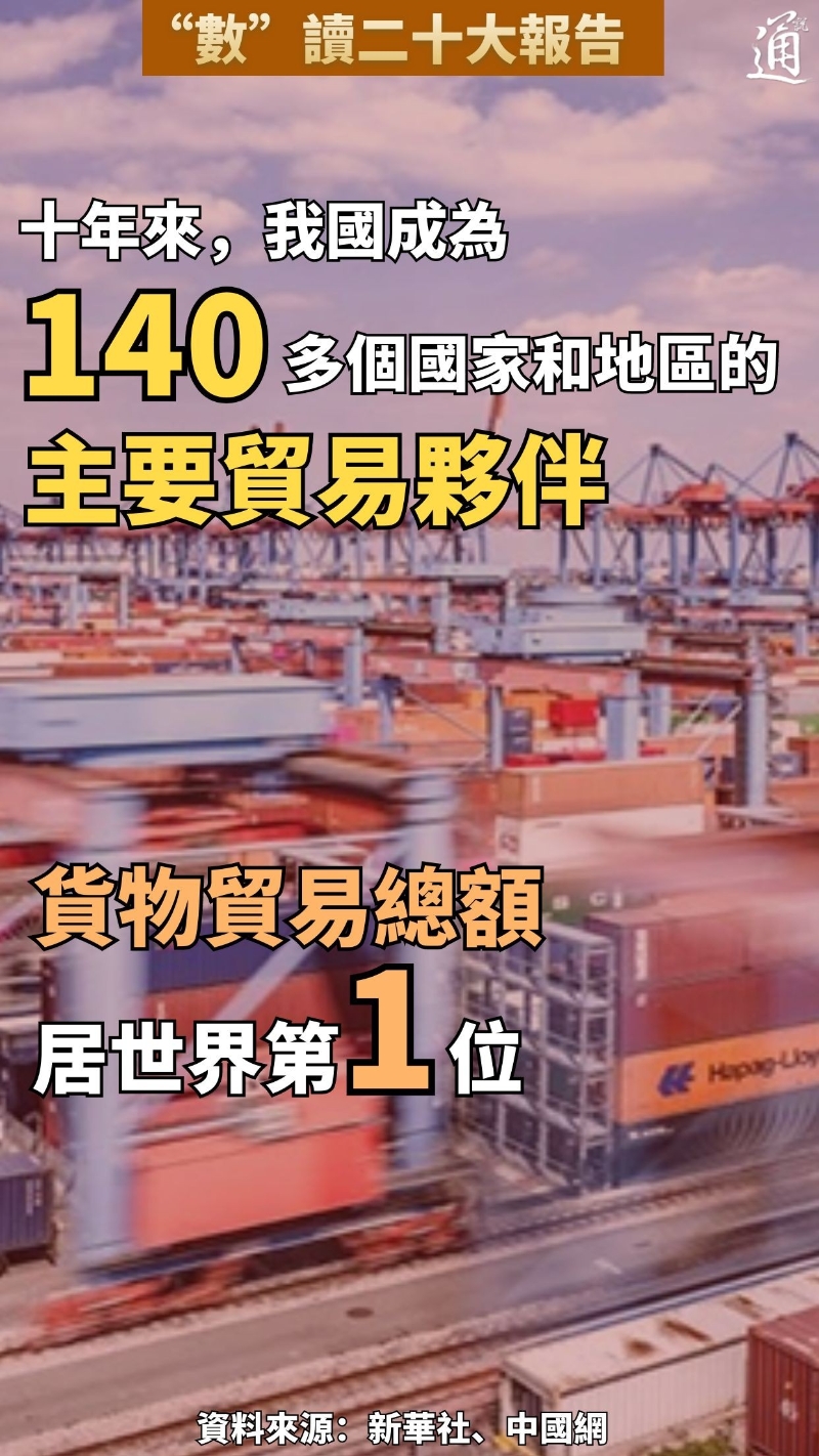 香港新聞網10月19日電 2022年10月16日,中國共產黨第二十次全國代表大會在北京人民大會堂開幕。習近平代表第十九屆中央委員會向大會作報告。報告中一組組亮眼的數據,展示了十年來中國發展新成就。