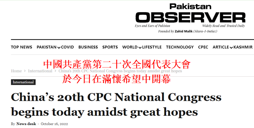 《巴基斯坦觀察家報》文章截圖 文章稱,面對經濟衰退、通貨膨脹、氣候變化、保護主義、全球不和諧、恐怖主義、戰爭、糧食安全和超級大國偏見等深刻的挑戰,全球人民需要一座燈塔來照亮奮勇向前的道路。 除了某些一心想用零和博弈維持霸權的人以外,世界的其他地方都在尋找一個領導人,一個可以與他們合作,認為合作夥伴關係是共存、和諧、和平以及雙贏發展的人。 值得慶幸的是,世界對中國寄予了厚望,他們見證了中國共產黨十九大以來中國史詩般的發展。