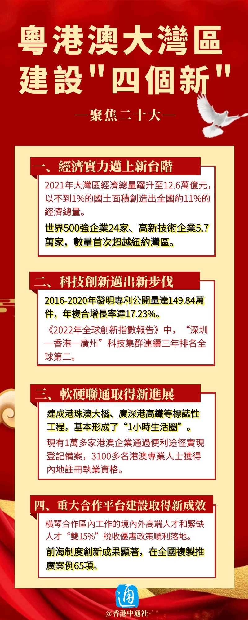以不到1%的國土面積創造出全國約11%的經濟總量,發明專利公開量達149.84萬件,建成港珠澳大橋、廣深港高鐵等標誌性工程……粵港澳大灣區建設還有哪些“新”,戳圖了解!