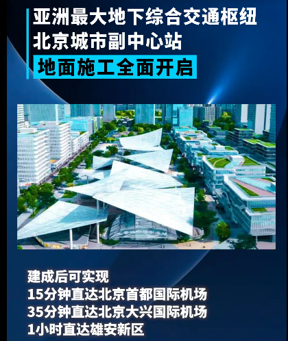 香港新聞網11月14日電 近日,亞洲最大地下綜合交通樞紐——北京城市副中心站地面施工全面開啟,距離正式開通更近一步。