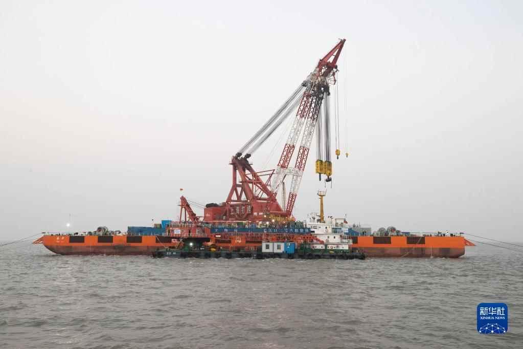 香港中通社11月21日電 據央視新聞客戶端消息,11月21日零時許,長江口橫沙水域見證了中國水下考古新的歷史性突破,22根巨型弧形梁組成的長48米、寬19米、高9米、重約8800噸的沉箱裝載著古船,經過近3小時水下持續提升後,在打撈工程船“奮力輪”中部月池緩緩露出水面,古船桅桿清晰可見,古船時隔150多年重見天日。