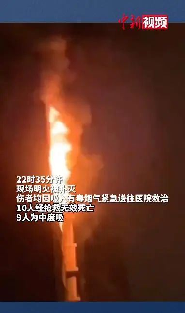 圖源:中新視頻截圖 據央視新聞消息,接到報警後,烏魯木齊市消防救援支隊第一時間趕赴現場處置,急救、應急、公安等力量迅速到現場開展救援行動。22時35分許,現場明火被撲滅。傷者均因吸入有毒煙氣緊急送往醫院救治,10人經搶救無效死亡;9人為中度吸入性肺損傷,生命體徵平穩,無生命危險。 據了解,吉祥苑小區為新冠肺炎疫情低風險區,居民可下樓活動。起火部位在高層住宅樓15層,火勢蔓延至17層,煙氣擴散至21層。經現場勘查和當事人陳述,初步確定火災因家庭臥室插線板著火引發。 目前,傷員救治、善後處置和相關調查工作正在有序開展。(完) 【編輯:凌玉辉】