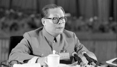 1992年10月12日,中國共產黨第十四次全國代表大會在北京人民大會堂開幕。這是江澤民同志代表第十三屆中央委員會作報告。新華社發