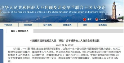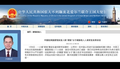 中使館譴責英方在滋擾事件中包庇反華分子分享到: