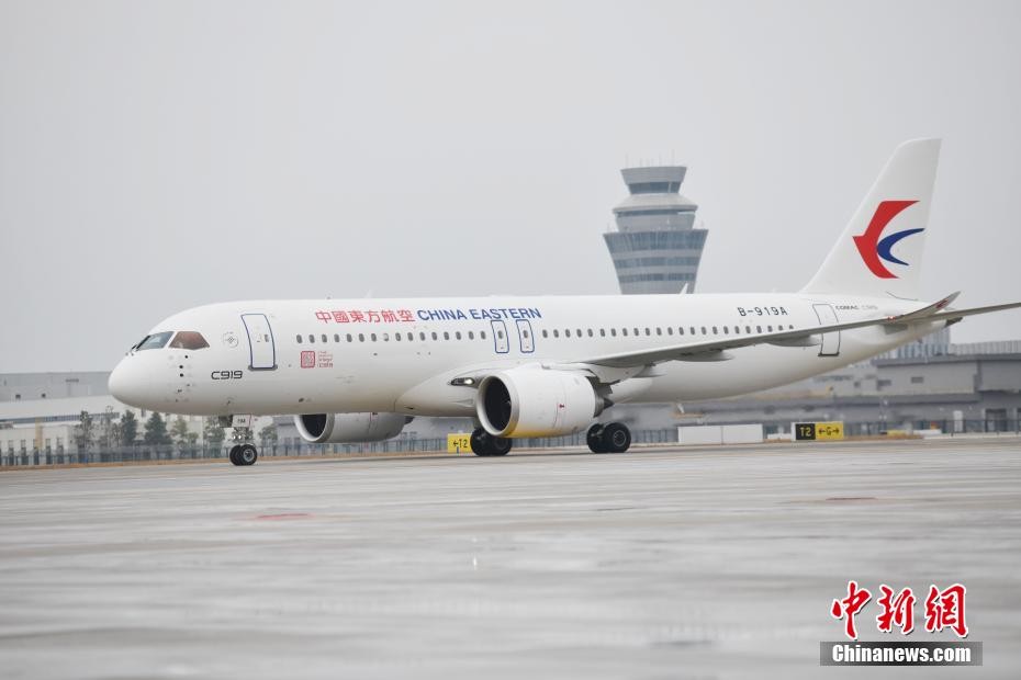C919飛機首次降落在成都天府國際機場。圖源:中新網