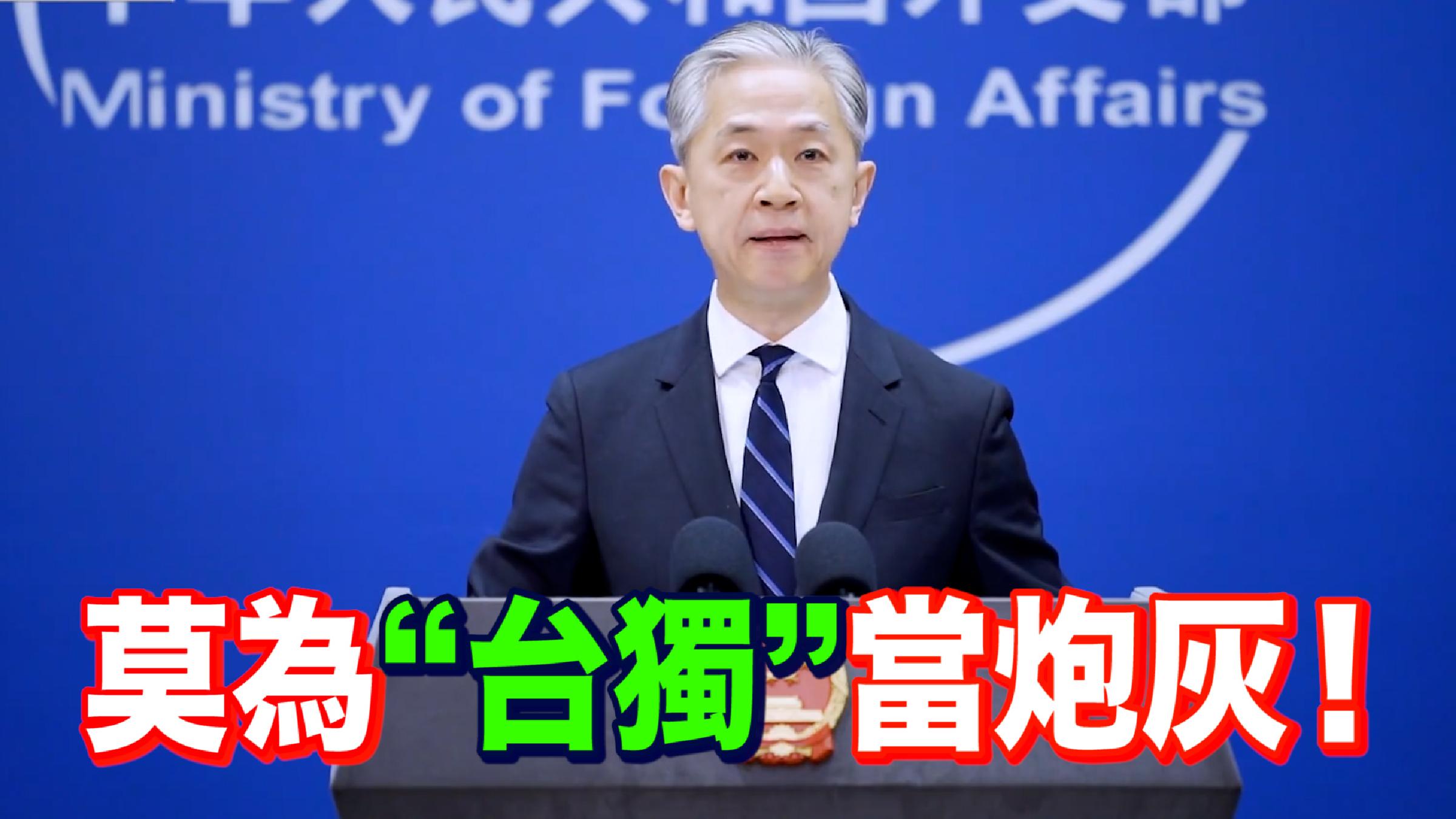 汪文斌表示,祖國完全統一是全體中華兒女的共同意志,是無法阻擋的歷史大勢,為實現國家統一大業奮斗重於泰山,為“台獨”分裂活動賣命輕於鴻毛。我們相信廣大台灣同胞深明大義,不會為“台獨”分裂勢力充當炮灰。
