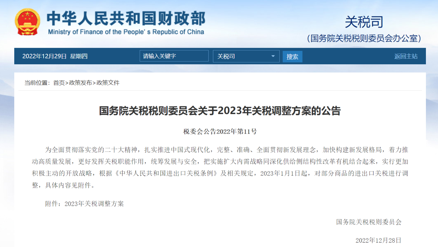 香港新聞網12月29日電 據中國財政部網12月29日消息,國務院關稅稅則委員會發布公告,2023年將調整部分商品的進出口關稅。
