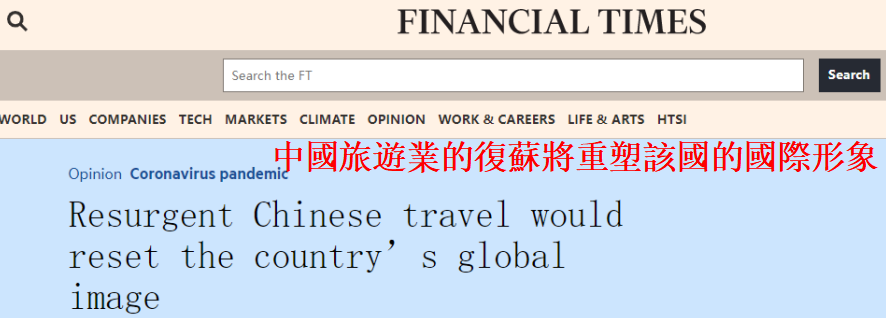 香港新聞網1月5日電 英國《金融時報》昨日(4日)發表題為《中國旅游業的復甦將重塑該國的國際形象》的文章。文章認為,受疫情影響,中國游客“消失”了3年,這期間中國的外部形象在一些國家迅速“妖魔化”,現如今,中國游客的回歸將“修複”中國的國際形象。