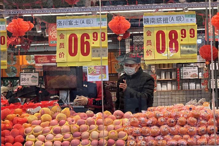 圖為市民在北京一果蔬店內挑選水果。 香港中通社圖片 其中,城市同比上漲1.8%,農村上漲1.8%;食品價格上漲4.8%,非食品價格上漲1.1%;消費品價格上漲2.6%,服務價格上漲0.6%。食品價格同比上漲成為推動12月CPI上漲的主要因素。 12月份,全國居民消費價格環比持平。其中,城市持平,農村下降0.2%;食品價格上漲0.5%,非食品價格下降0.2%;消費品價格下降0.1%,服務價格上漲0.1%。(完) 【編輯:凌玉辉】