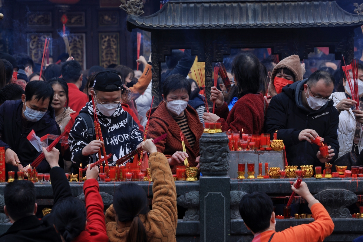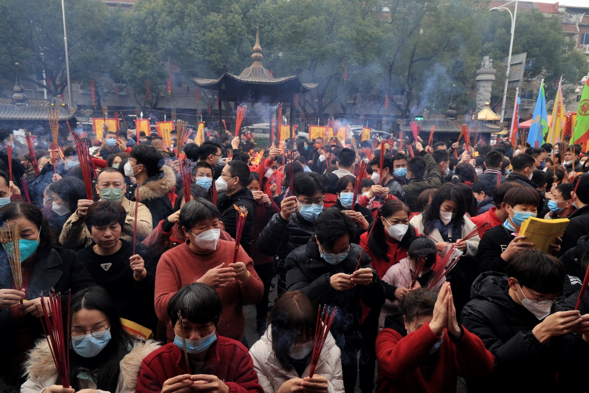 香港新聞網1月22日泉州電 (記者許其皓)1月22日大年初一,福建泉州通淮關岳廟人山人海,大批善信早早帶著香燭貢品前來祈福,爭先恐後,祝願新年順景。通淮關岳廟位於泉州市鯉城區塗門街(古稱通淮街),1992年被列為泉州市文物保護單位,2005年被列為福建省文物保護單位。通淮關岳廟始建年代不詳,原為關帝廟,民國三年(1914年)增祀岳飛,故改稱關岳廟。現存建築為清同治六年(1867年)及民國初重建,1986年至1990年再次全面整修。廟坐北朝南,由武成殿、崇先殿、三義廟三座并列組成,連成一體,均硬山頂,穿鬥式木構架,三開間。總建築面積1294平方米。該廟在台灣及南洋有分靈70多座。