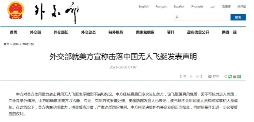 謝鋒強調,中國民用無人飛艇誤入美領空完全是由不可抗力導致的意外、偶發事件,事實一清二楚,不容歪曲抹黑。但美方置若罔聞,執意對即將離開美領空的民用飛艇濫用武力,明顯反應過度,嚴重違反國際法精神和國際慣例。美方所作所為嚴重衝擊、損害巴厘島會晤以來雙方穩定中美關係的努力和進程。中方對此堅決反對、強烈抗議,敦促美方不得採取進一步行動損害中方利益,不得升級、擴大緊張局勢。中國政府正密切關注事態發展,將堅決維護中方企業的正當權益,堅決捍衛中方利益和尊嚴,保留作出進一步必要反應的權利。 【編輯:丘志彬】