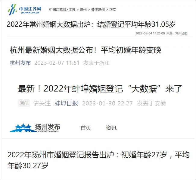 內地多地公佈婚姻大數據!結婚登記高峰年齡段是…香港新聞網2月8日電 日前,江蘇常州、浙江杭州、安徽蚌埠、江蘇揚州等地民政部門公佈2022年度婚姻大數據。