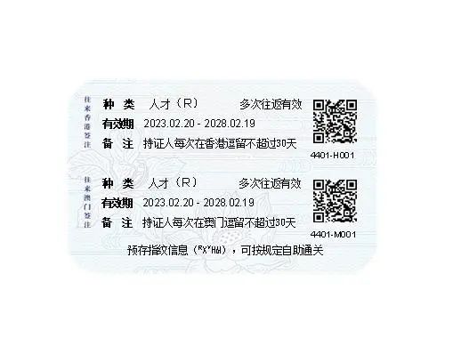 香港新聞網2月9日電 中華人民共和國出入境管理局2月9日發佈公告,為便利粵港澳大灣區人才從事科研學術交流活動,促進服務粵港澳大灣區建設發展,自2023年2月20日起在粵港澳大灣區內地城市試點實施往來港澳人才簽注政策。 根據該政策,在粵港澳大灣區工作的內地6類人才可以申辦往來港澳人才簽注,包括: 傑出人才,即對灣區建設發展作出重大突出貢獻或者灣區急需的頂尖人才; 科研人才,即灣區科研機構副高級以上職稱人員; 文教人才,即灣區高等院校副高級以上職稱人員; 衛健人才,即灣區副高級職稱以上衛生健康專業技術人才及衛生研究人才; 法律人才,即參與在香港、澳門法律仲裁程序的內地仲裁員,處理內地與香港、內地與澳門投資爭端的內地調解員等; 其他人才,即灣區人才、科技主管部門認定的高層次管理和專業技術人員。 上述6類人才可以根據實際需要,單獨或者同時申請辦理赴香港人才簽注和赴澳門人才簽注。其中傑出人才可以申辦有效期5年的人才簽注,科研、文教、衛健人才可以申辦有效期3年的人才簽注,法律、其他類人才可以申辦有效期1年的人才簽注。持證人在簽注有效期內可以不限次數往來香港或者澳門地區,每次在香港或者澳門停留不超過30天。傑出人才可以由本人向粵港澳大灣區任一縣級以上公安機關出入境管理機構提出申請,其他5類人才應由本人向工作所在地的縣級以上公安機關出入境管理機構提出申請。人才簽注的申請材料和申辦手續,可通過中華人民共和國出入境管理局、廣東省公安廳出入境管理局政府網站或者12367服務平台查詢。