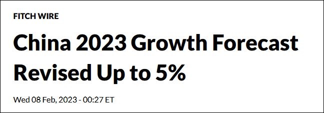 香港新聞網2月9日電 信用評級機構惠譽(Fitch)2月8日將2023年中國經濟增長的預測從之前的4.1%增加到了5.0%。報告認為,中國在優化新冠疫情防控措施後,消費和其他經濟活動的恢復速度要比預期快。